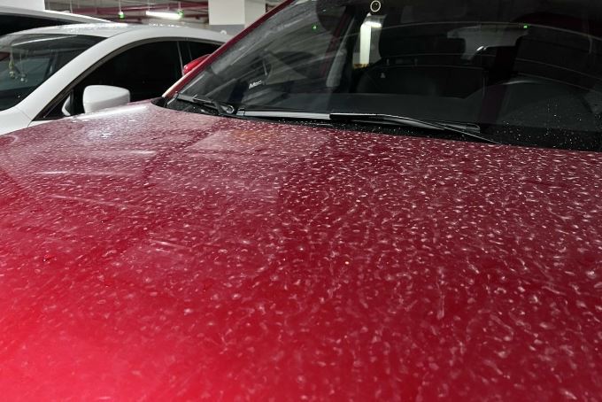 Sau hai tuần, Quang phát hiện bề mặt sơn xe không còn độ bóng như trước, có những đốm trắng đục. Chủ xe dùng khăn vải và dung dịch chuyên dụng lau, nhưng vết bẩn bám chặt, độ bóng của xe không được cải thiện. Anh đã phải tìm đến các cửa hàng spa để đánh bóng phục hồi.