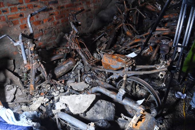 Xe máy cháy tại chung cư mini ở Hà Nội, hôm 13/9. Ảnh: Giang Huy