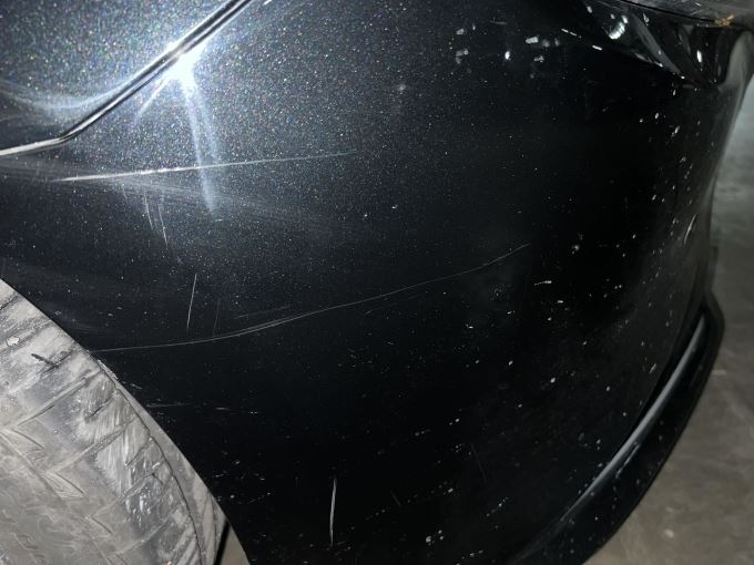 Quang Hiếu (TP HCM) lái xe về quê khi trời mưa lớn. Khi di chuyển trên đường, xe anh thường xuyên bị hất nước bởi các xe tải chở hàng nặng, xe con di chuyển cùng chiều, ngược chiều với tốc độ nhanh. Sáng hôm sau, anh phát hiện xe bị xước dăm ở phần đầu và mũi xe.