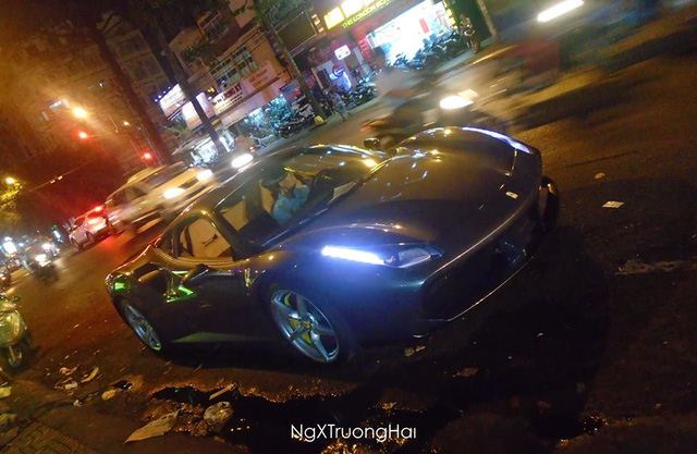 Ferrari 488 GTB màu xám ghi nổi bật trên phố. Ảnh: NgXTruongHai