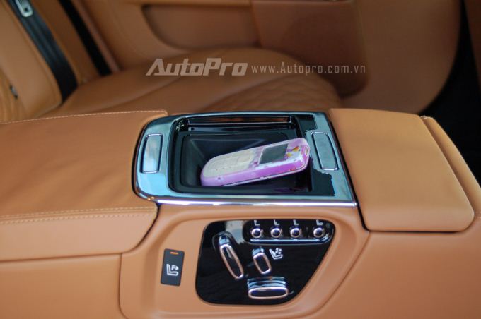Ở giữa 2 hàng ghế sau ngoài các nút chỉnh vị trí ghế hay chức năng massage, mẫu xe sang còn tích hợp hộc đựng đồ tiện lợi cho hành khách phía sau có thể bỏ điện thoại hay máy tính bảng lên.