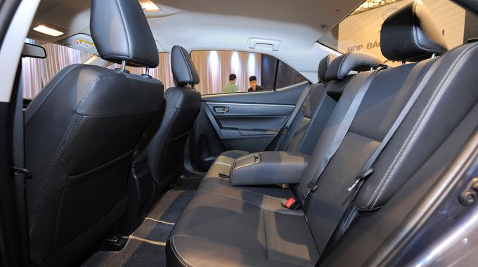 Nhờ vào việc tăng chiều dài cơ sở đáng kể (lên đến 100mm) và chiều dài tổng thể lên 80mm, nên không gian nội thất của Corolla Altis 2014 đem lại sự thoáng đãng, thoải mái vượt bậc cho người sử dụng. Cụ thể hơn, khoảng cách giữa hai hàng ghế đã tăng lên đến 75mm. Altis 2014 có thêm ghế lái chỉnh điện 10 hướng, cùng hệ thống âm thanh cao cấp với đầu DVD1 đĩa, 6 loa, màn hình cảm ứng, kết nối USB/AUX/Bluetooth.