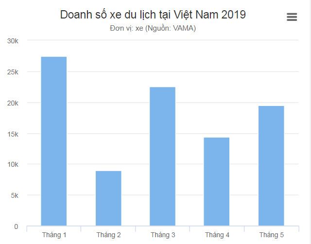 Theo thống kê của Hiệp hội các nhà sản xuất ôtô Việt Nam (VAMA), doanh số bán hàng của thị trường trong tháng 5/2019 đạt 27.373 xe. Trong đó riêng xe con tiêu thụ 19.517 xe.