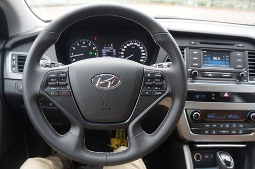 Sonata 2015 sở hữu chìa khóa thông minh, nút khởi động Start/Stop và nhiều công nghệ thông minh khác như Cruise Control, Camera lùi cùng tính năng giải trí đầy đủ.