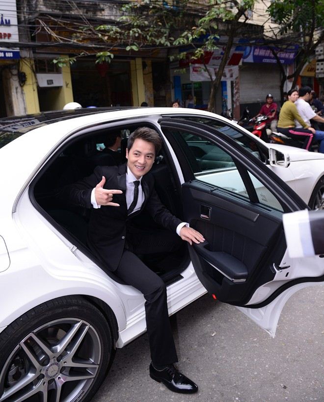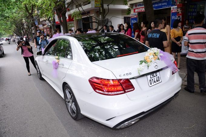 Về tổ chức đám cưới ở Hà Nội, nam ca sĩ được Mercedes-Benz Việt Nam tài trợ chiếc E400 2014 màu trắng làm xe hoa.
