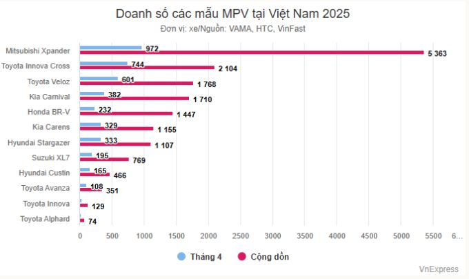Doanh số các hãng xe bán MPV tại Việt Nam sau 4 tháng đầu 2025:
